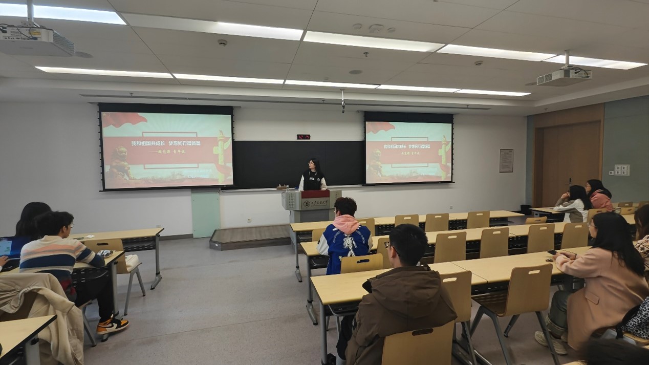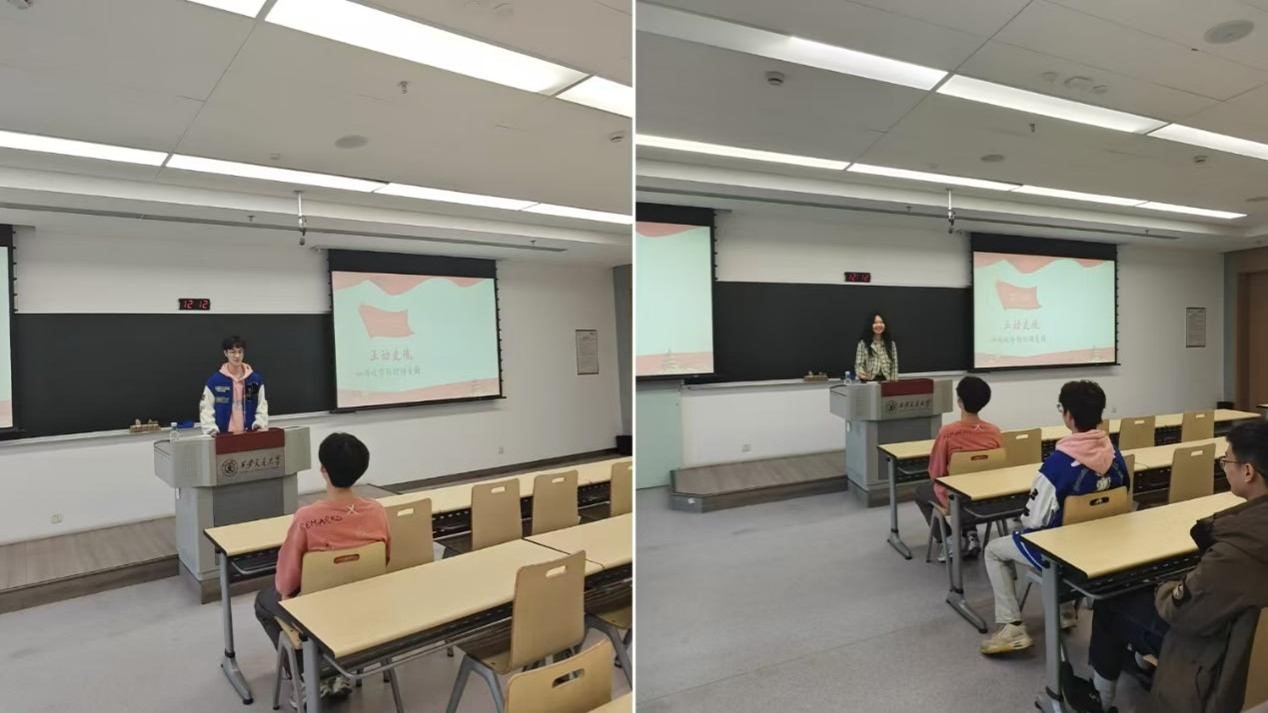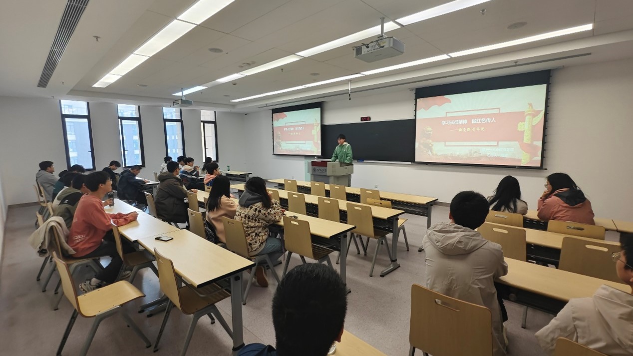 团支部特别策划了“青言青语”微党团课专题宣讲活动,邀请优秀青年党员、团干部及青年榜样,用“青言青语”讲述红色故事,分享成长感悟。他们以贴近青年实际、贴近青年生活的话语,让党的理论知识变得生动鲜活,让每一位参与者都能听得懂、记得住、用得上。闫晗同学以饱满的热情和深刻的理解,向大家分享了一场以西迁精神为主题的精彩汇报。在汇报中,闫晗同学深情讲述了西迁过程中的感人故事和英雄人物。站在新的历史起点上,广大青年要牢记党的嘱托和人民的期望,把个人的理想追求融入到党和人民的事业之中,为实现中华民族伟大复兴的中国梦贡献青春力量。邓可同学进行了以“学习长征精神,做红色传人”为主题的微党课。邓可同学强调了长征精神对于当代青年的重要意义。他说,长征精神不仅是中国共产党和中国人民的宝贵精神财富,更是激励我们不断前进的强大动力。作为新时代的青年,我们应该继承和发扬长征精神,坚定理想信念,勇于担当使命,为实现中华民族伟大复兴的中国梦贡献自己的力量。邓可同学还结合自身的成长经历和感悟,分享了如何在学习和生活中践行长征精神。他鼓励大家要勇于面对困难和挑战,不断锤炼自己的意志品质;要珍惜来之不易的学习机会,努力学习科学文化知识,提高自己的综合素质;要积极参与社会实践和志愿服务活动,为社会贡献自己的力量。冯庆豪同学以生动的语言和真挚的情感,讲述了自己与祖国共同成长的故事。他回顾了自己从小到大的成长历程,从个人梦想的萌芽到逐渐明确的人生目标,都与祖国的发展紧密相连。冯庆豪提到,自己见证了祖国在科技、教育、文化等各个领域的飞速进步,这些成就不仅让国家更加繁荣昌盛,也为自己的成长提供了广阔的舞台和无限的可能。