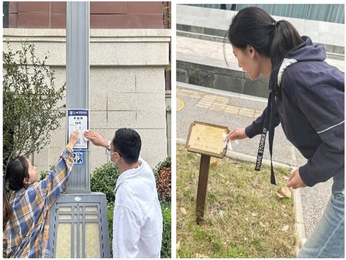 采访结束后,四个支部联合开展了创新港维护活动。活动中,同学们分工明确、井然有序地对各类设施进行了细致的清洁。无论是铭刻着校友支持与贡献的铭牌,彰显历史名人风采的雕塑,还是创新港地标,都在志愿者们的用心呵护下重现亮丽,让每位经过的人都能感受到创新港的独特魅力。
