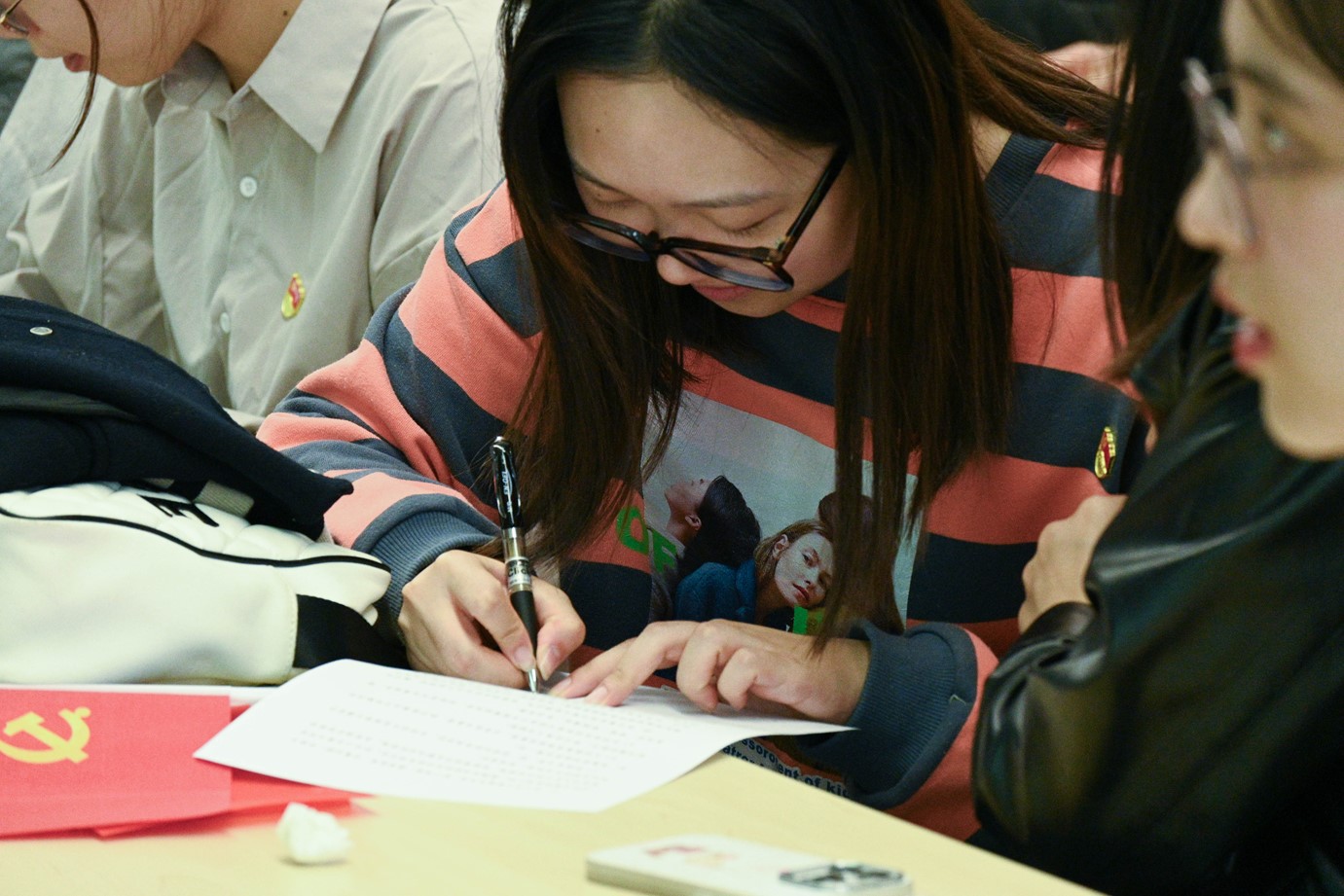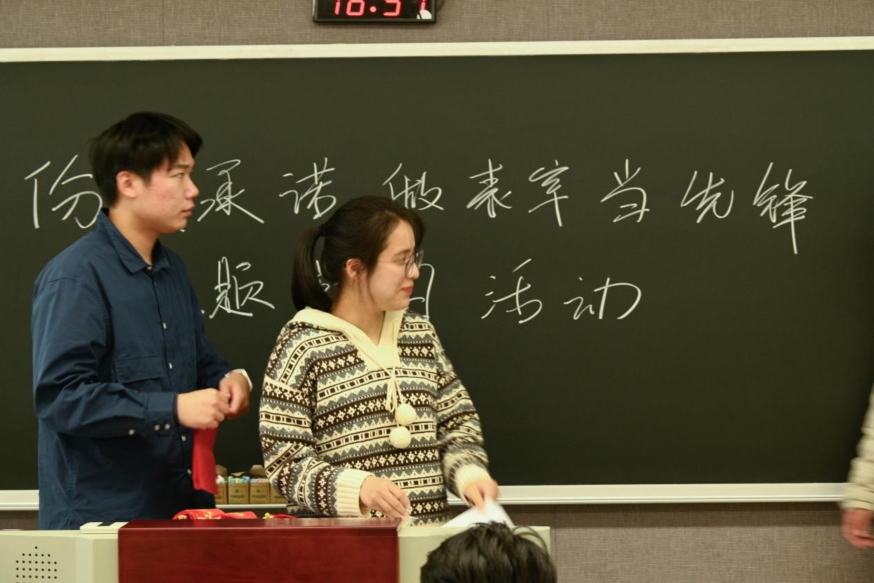 为亮明共产党员身份,积极担当党员责任,两党支部推行学生党员亮牌戴徽行动,明确党员义务,深化责任意识,树立服务理念。支部要求每位到会党员当场签署《“亮身份、践承诺、做表率”党员亮岗履职承诺书》,希望借此次机会鼓励支部党员同志能以承诺书为标杆,对标对表条条落实,以实际行动贯彻落实先锋模范作用,真正把合格党员的标尺立起来,把合格党员做人做事的及格线划出来,把合格党员的先锋形象树起来。
