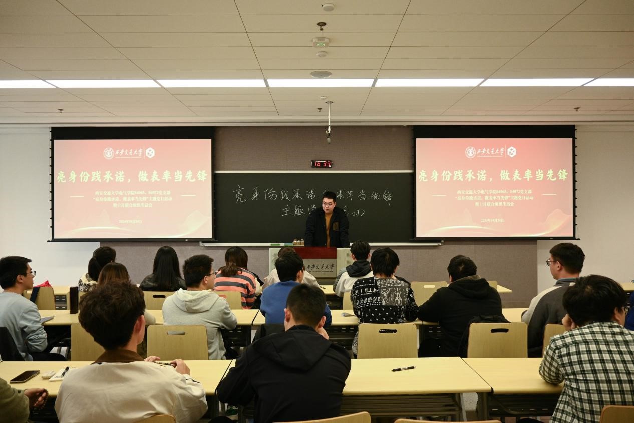 在习近平新时代中国特色社会主义思想的指导下,为贯彻落实电气学院党委“党员亮身份·担当作表率”主题学习要求,激励学生党员自觉履行职责,时刻牢记党员身份,积极履行党员的义务,对学生党员的党性修养、理想信念进行进一步的培养强化,做到不忘初心使命,忠诚干净担当,硕4065党支部联合硕4072党支部开展“亮身份践承诺,做表率当先锋”主题党日活动与十月联合组织生活会。本次主题党日活动由硕4065党支部书记胡可勰主持,硕4065、硕4072党支部全体党员积极分子同志参与。