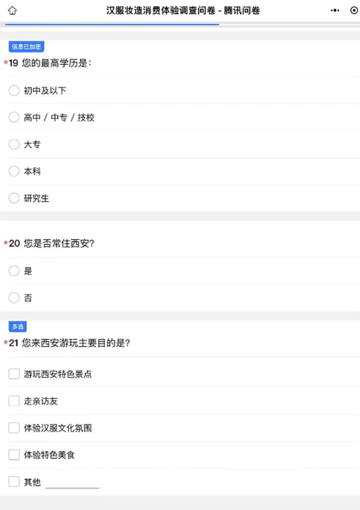 在正式开展调研之前,问卷的设计是至关重要的一步,一个科学合理的问卷不仅能帮助团队获取有效的数据,还能确保调研结果的准确性和可靠性。因此,进行了多次讨论和修改后,调研小组最终确定了一份涵盖多个维度的问卷。问卷内容涵盖汉服爱好者的基本信息,如年龄、性别、职业等,以及对汉服租赁的认知程度和体验行为。小组成员们特别设置了开放式问题,以便受访者能够自由表达他们对汉服的看法和建议。此外,考虑到不同人群的需求差异,问卷中还包括了关于价格接受度、款式偏好等多个方面的具体问题,并且还特别关注了潜在消费者的态度。