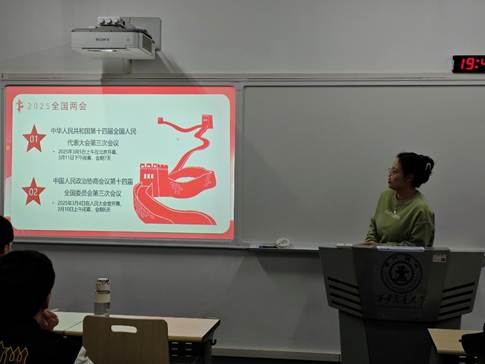 两会精神学习会以“青听两会担当有为”为主题,组织团员集中学习政府工作报告中关于教育强国、科技创新、青年发展等重要部署,结合学科特色展开讨论,团员们结合自身实际,就如何提升创新能力等议题积极建言,为中国式现代化贡献青年力量,进一步凝聚思想共识,激发奋斗热情。