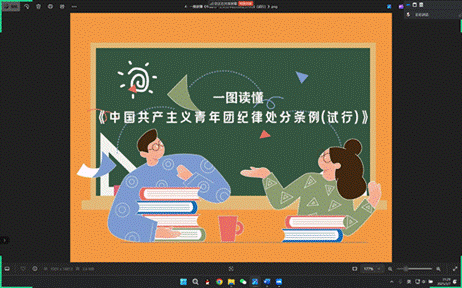 团支部全体团员分为三个团小组,所有团员积极参与,首先进行了团规团纪的学习。团员认真学习了《中国共产主义青年团纪律处分条例》等重要文件,深刻认识到团规团纪对于维护团的团结统一、保持团的先进性和纯洁性的重要意义,每位团员都能更加清晰地认识到自己作为共青团员的责任与义务,增强遵守团的纪律的自觉性,从而在日常生活中更好地发挥共青团员的先锋模范作用。