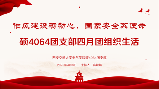 硕4064团支部于4月8日举办以“作风建设砺初心,国家安全系使命”为主题的团支部四月团组织生活。此次会议由高婉婧主持。