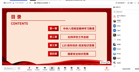 为深入贯彻落实习近平总书记关于党的作风建设的重要讲话和指示精神,全面落实团的思想建设任务,推动团支部高质量发展,硕4068团支部于2025年4月28日与线上召开了以“深入贯彻中央八项规定精神,增强团员责任意识”为主题的4月团组织生活。会议由团支部书记罗雅馨主持,支部全体团员参与。
