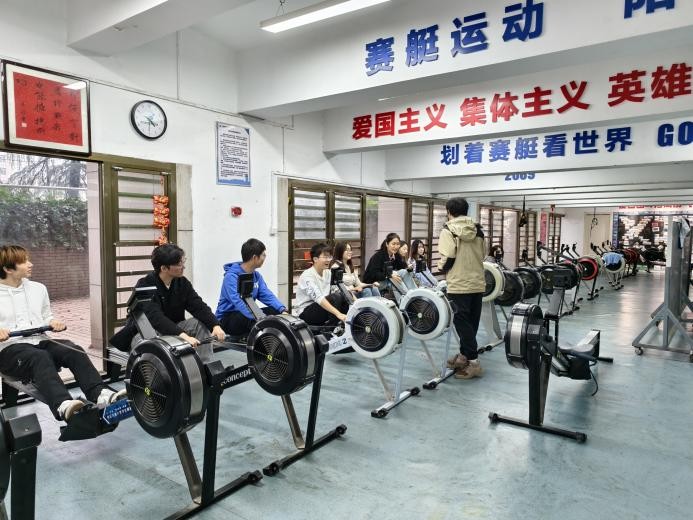 在体验环节,活动现场气氛热烈。同学们在专业指导下,有序进行了陆上划船器(测功仪)的操作体验,亲身感受赛艇运动的技术要领与独特魅力。力量训练区内,大家同样热情高涨,认真学习了基础力量训练器械的安全使用方法,认识到核心力量对于这项运动的重要性。整个过程中,俱乐部成员耐心指导,同学们积极尝试,充分体现了交大学子勇于探索、热爱运动的青春风采。