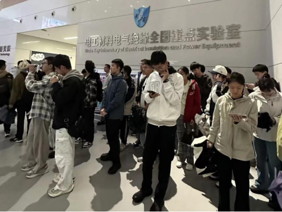 下午13:45,全体人员在1-5056教室集合,开启了内容丰富、意义深远的实践参访之旅。全体人员集合后,前往电气绝缘国家重点实验室进行参观。在实验室工作人员的讲解下,同学们近距离了解了高电压与绝缘技术领域的先进科研设备与前沿研究方向,加深了对专业知识的直观认识。
