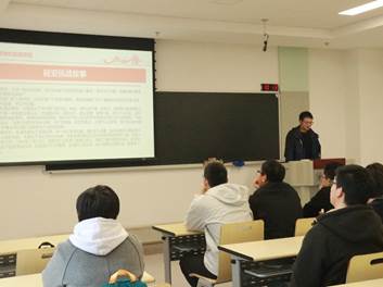 随后,谭依洋同学围绕延安精神和延安故事展开分享。他首先从延安精神诞生的时代背景和历史环境切入,详细阐释了延安精神“坚定正确的政治方向、解放思想实事求是的思想路线、全心全意为人民服务的根本宗旨、自力更生艰苦奋斗的创业精神”的四大核心精神内涵。接着,他结合“南泥湾大生产运动”“张思德为人民服务”等一系列经典的延安故事,生动展现了革命先辈在艰苦环境中坚守信仰、奋勇拼搏的精神风貌。最后,谭依洋同学还结合当代青年的使命与担当,阐述了延安精神对新时代学子的启示,鼓励大家将艰苦奋斗、求真务实的精神融入日常学习与生活。