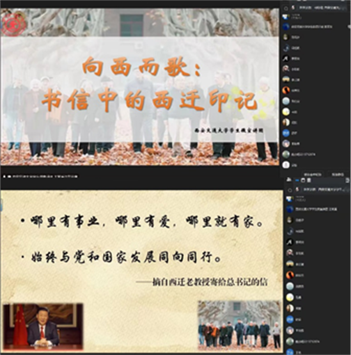 如果说博物馆的参观是一次历史的沉浸,那么随后开展的线上宣讲则是一场精神的解码。学校微宣讲团的成员以“一封书信里的家国情怀”为题,深情解读了西迁老教授写给习近平总书记信件背后的精神密码。