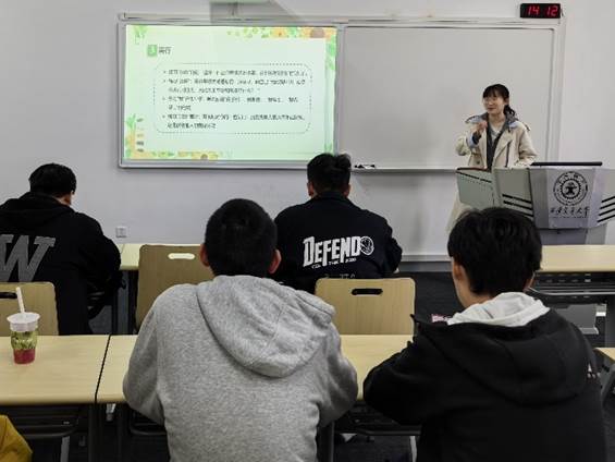随后,心理委员谭玲以“识己识人,善语传情”为主题开展专题分享。结合自身学习心理知识的经历与班级日常相处观察,她提出:“博士生阶段的人际交往既是生活中的‘情感纽带’,更是科研合作中的‘助推器’,良好沟通的前提在于先‘识己’,再‘识人’,最终以‘善语’传递真情。”