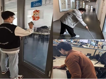 学习环境是科研与思维的“第二战场”,工位则是研究生同学每日科研学习的主要环境。为了维护学习环境干净整洁,硕5074班同学主动对躬行楼3-5033与3-5035房间开展了深度清扫。大家分工协作,擦拭积灰的桌面、整理杂乱的书籍、清扫角落的碎屑,让工位焕然一新。看着清扫完后的工位,清洁的桌面、整齐的书籍、干净的地面,同学们发自内心地感到清爽与自豪。在协作中,同学们不仅提升了公共空间的使用体验,也增强了维护集体环境的自觉性。擦拭的是灰尘,点亮的是心情,窗明几净的工位,成为同学们专注科研、静心学习的“能量场”,也让责任感在同学们自己的亲手劳动中落地生根。